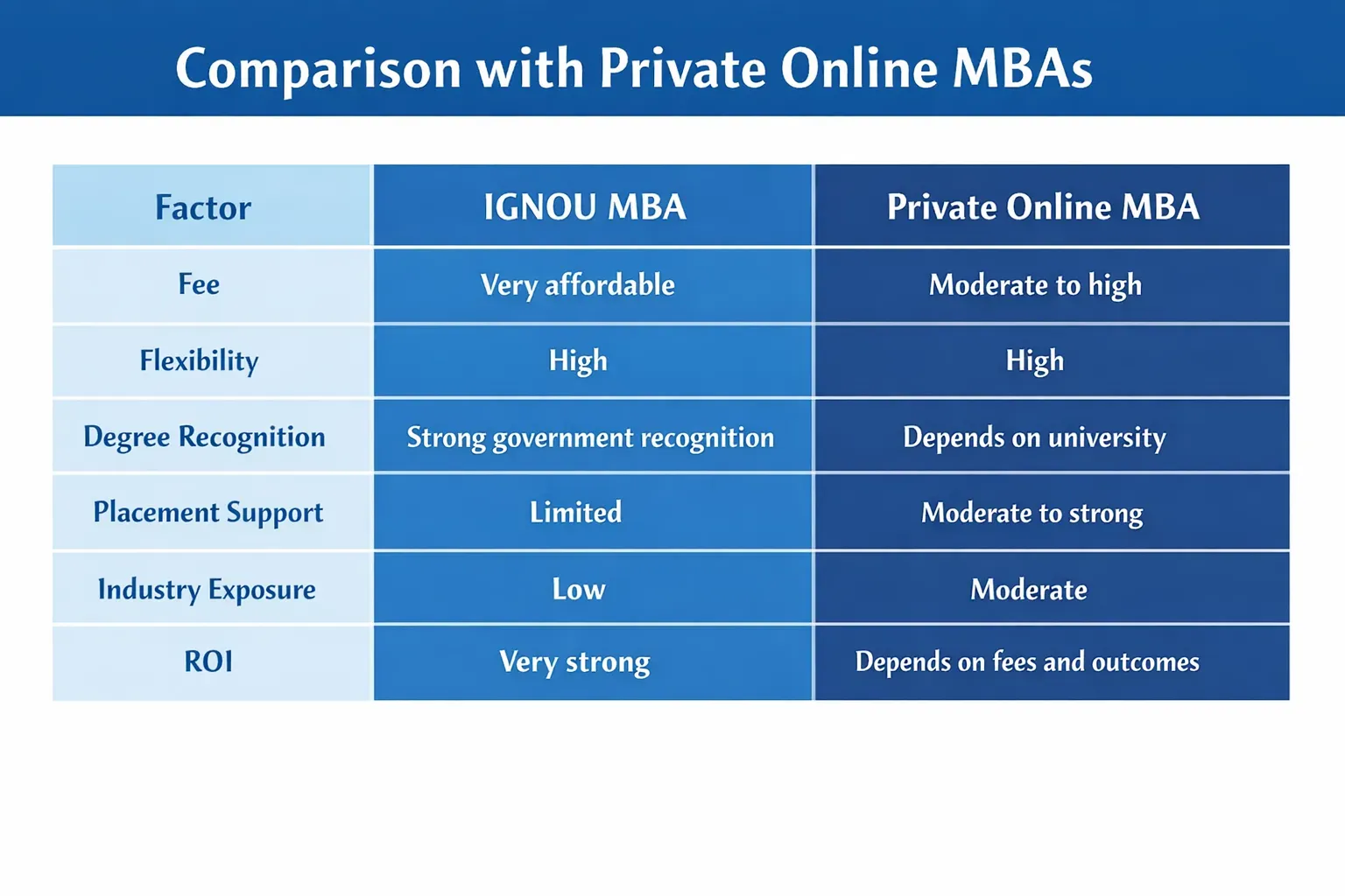 If your priority is knowledge, degree recognition, affordability, and career stability, IGNOU MBA delivers strong value.
